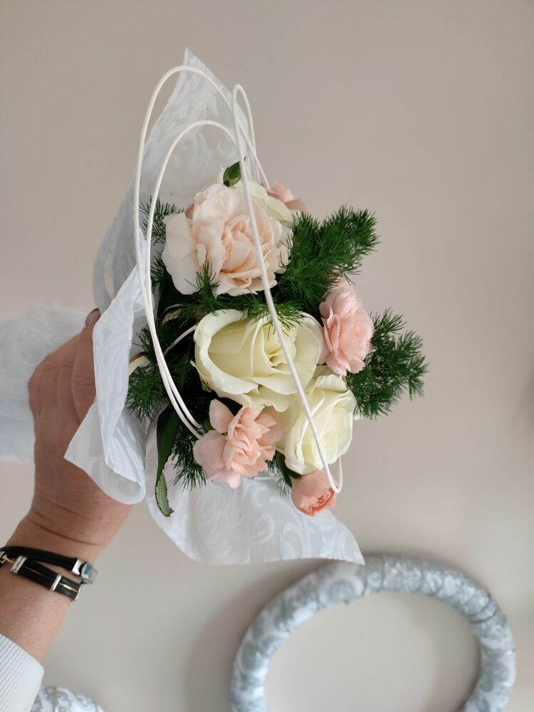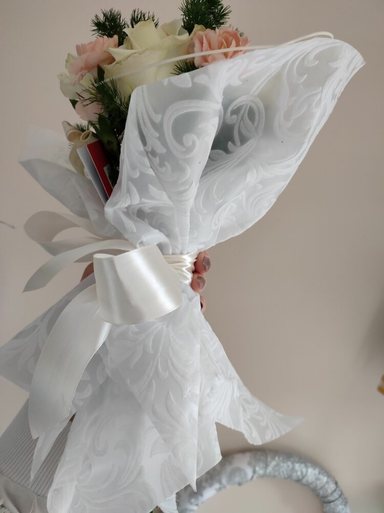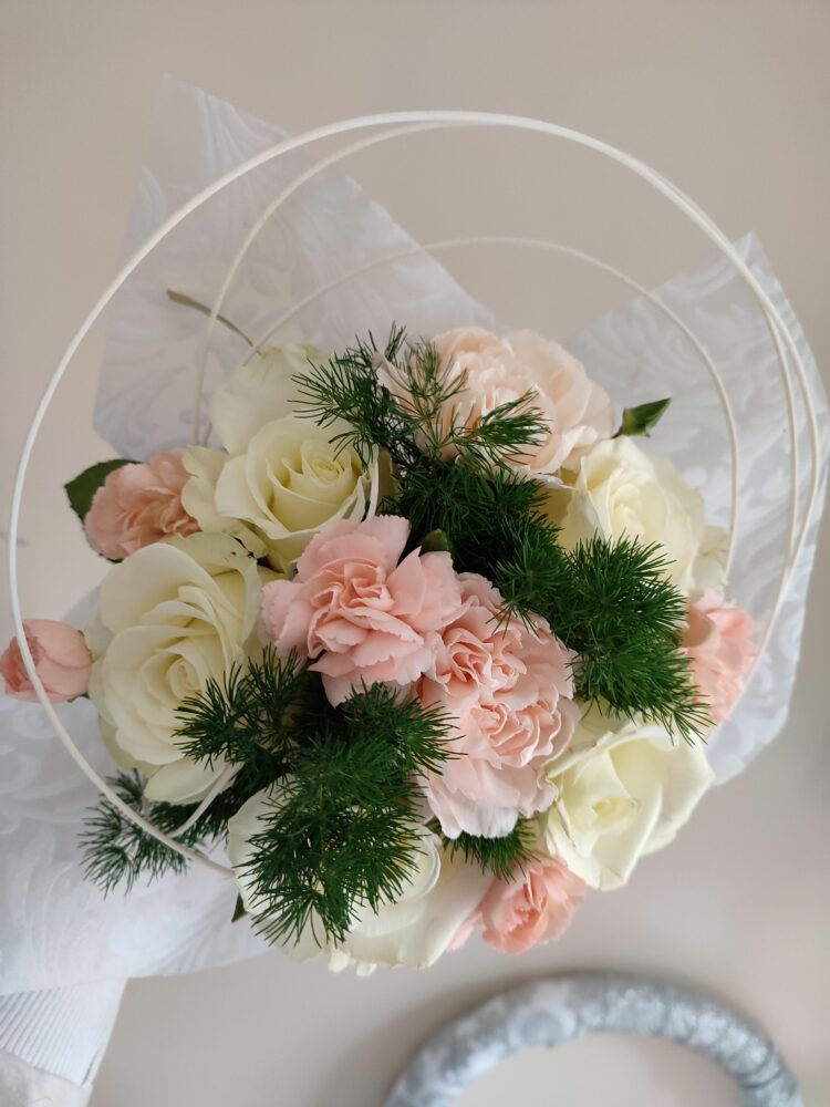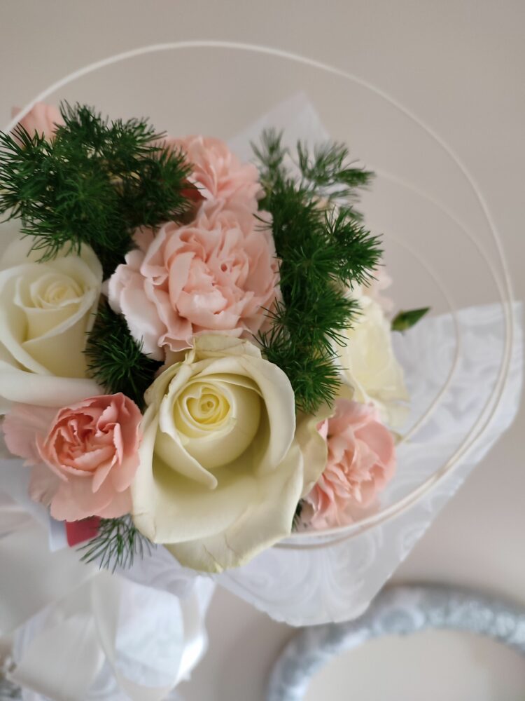 Bukiet białe róże, goździki/naturalny