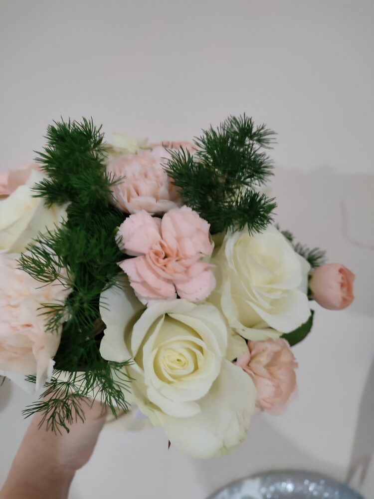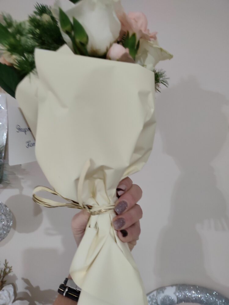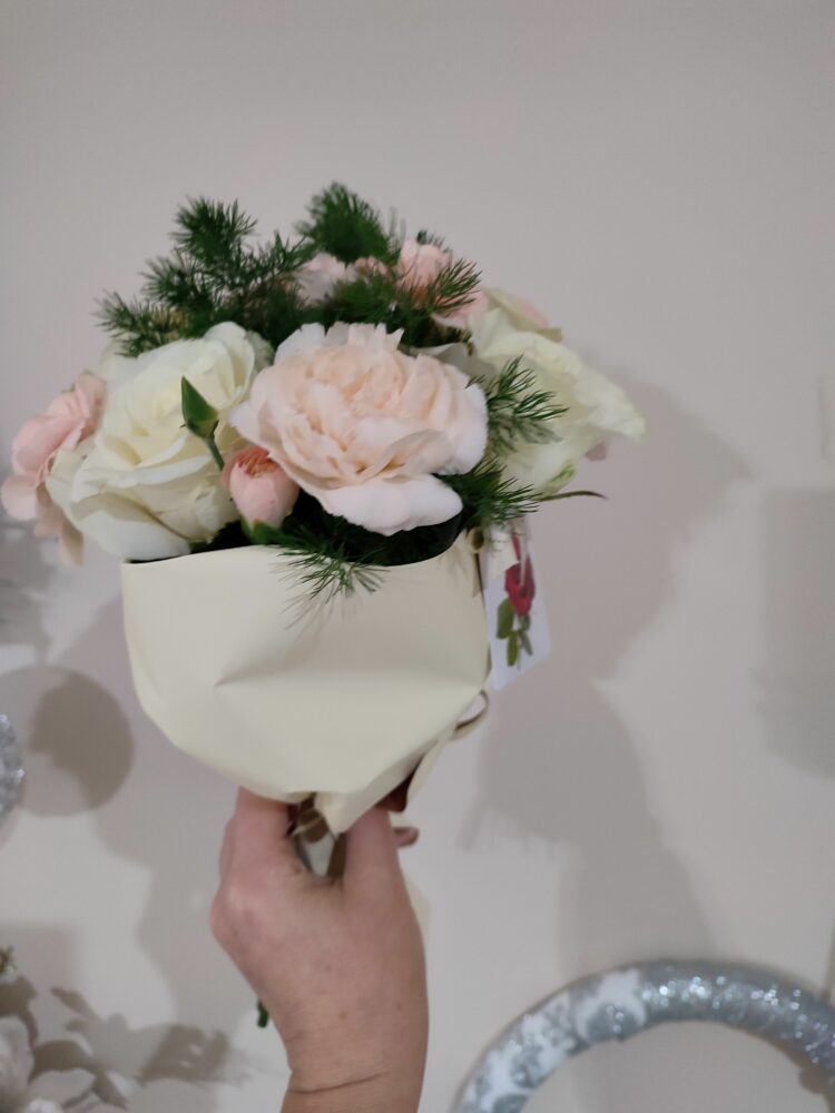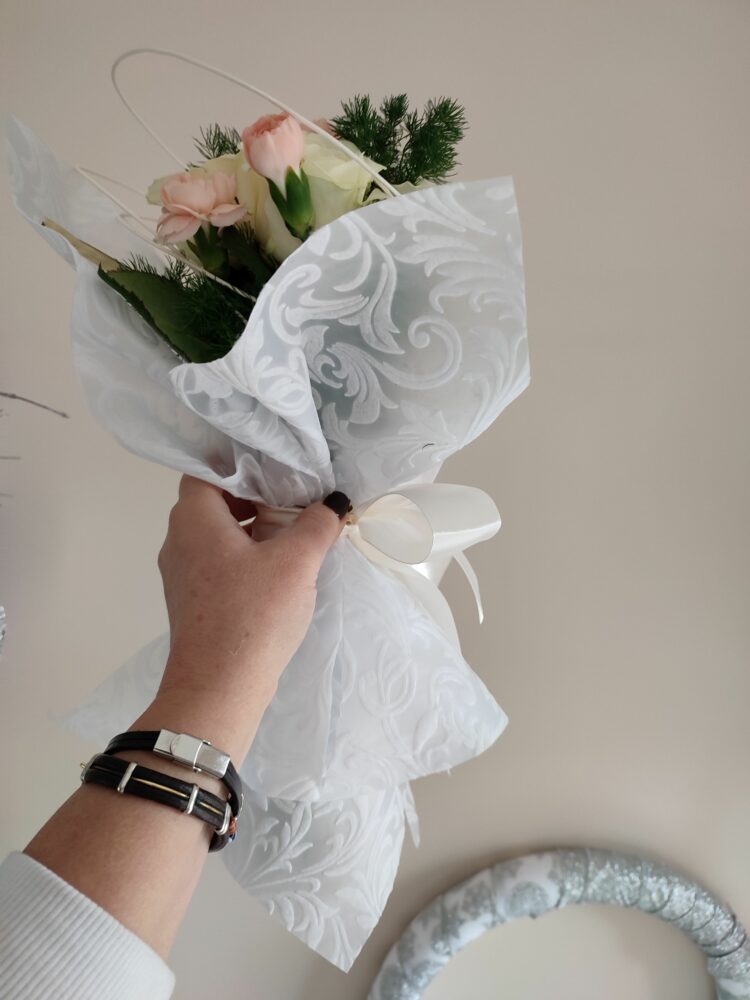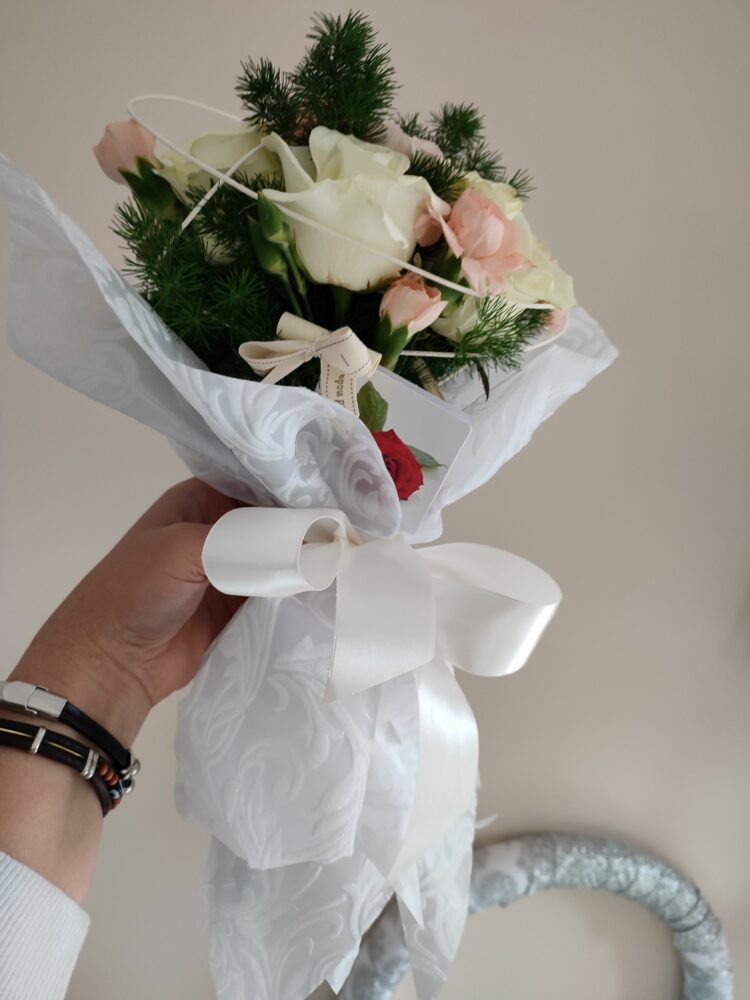 Bukiet białe róże, goździki/naturalny