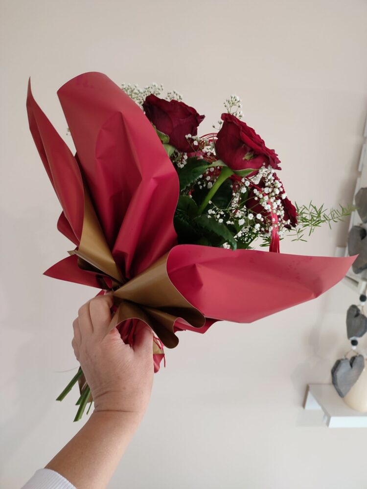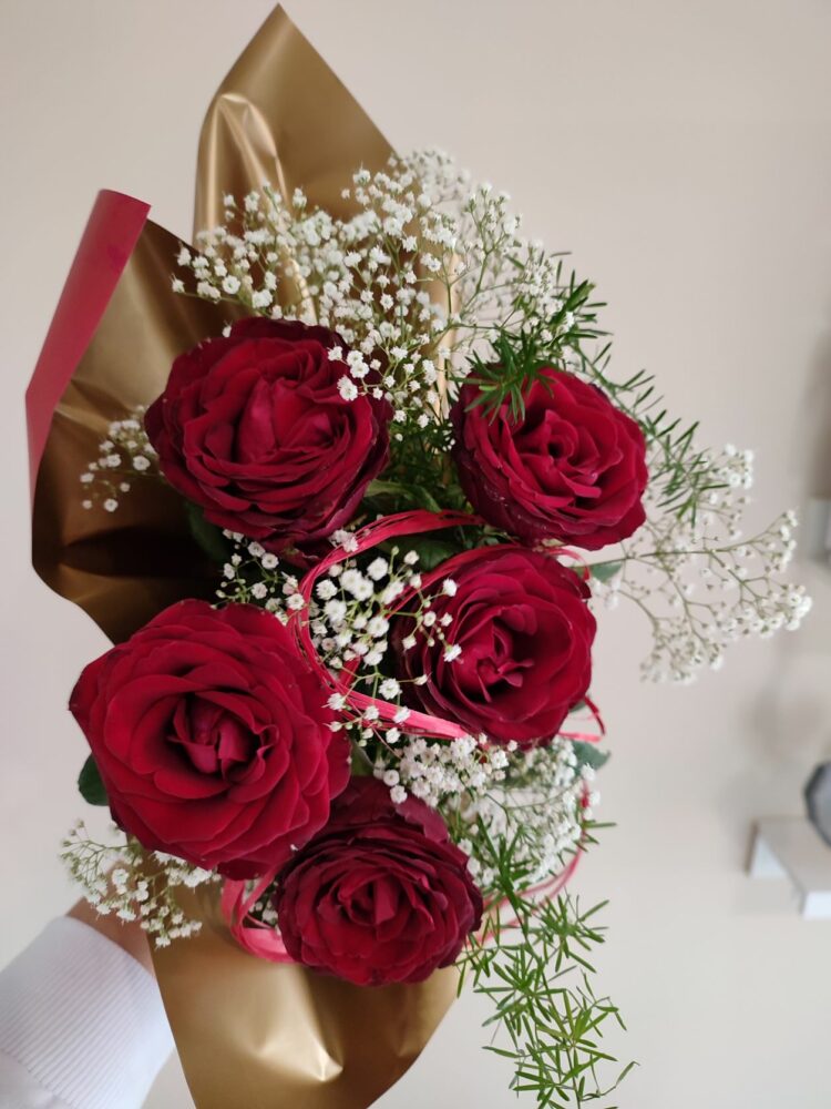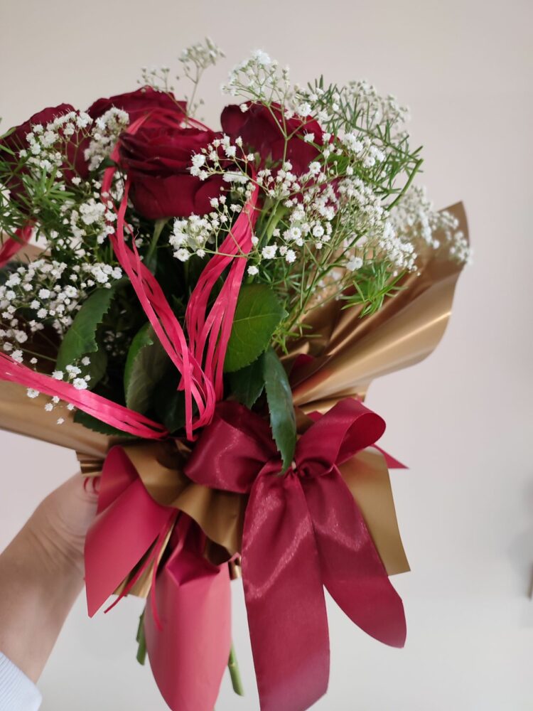 Bukiet z 5 dużych , czerwonych róż z dodatkami (wszystko naturalne).