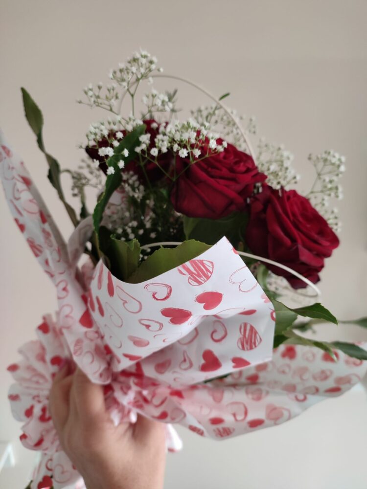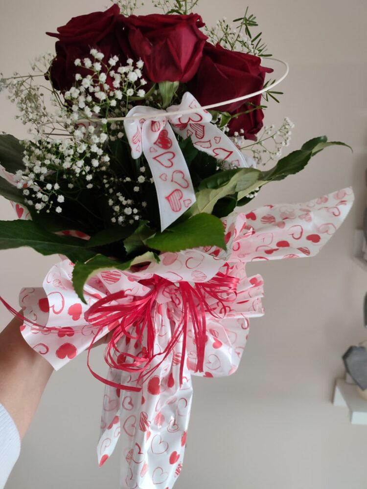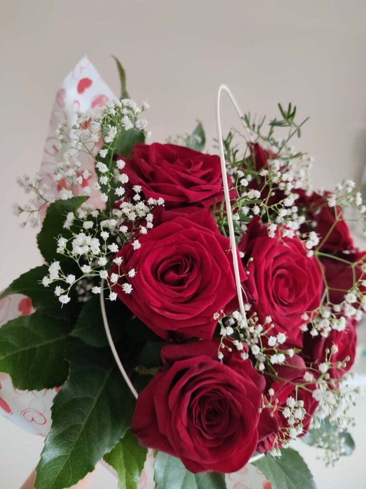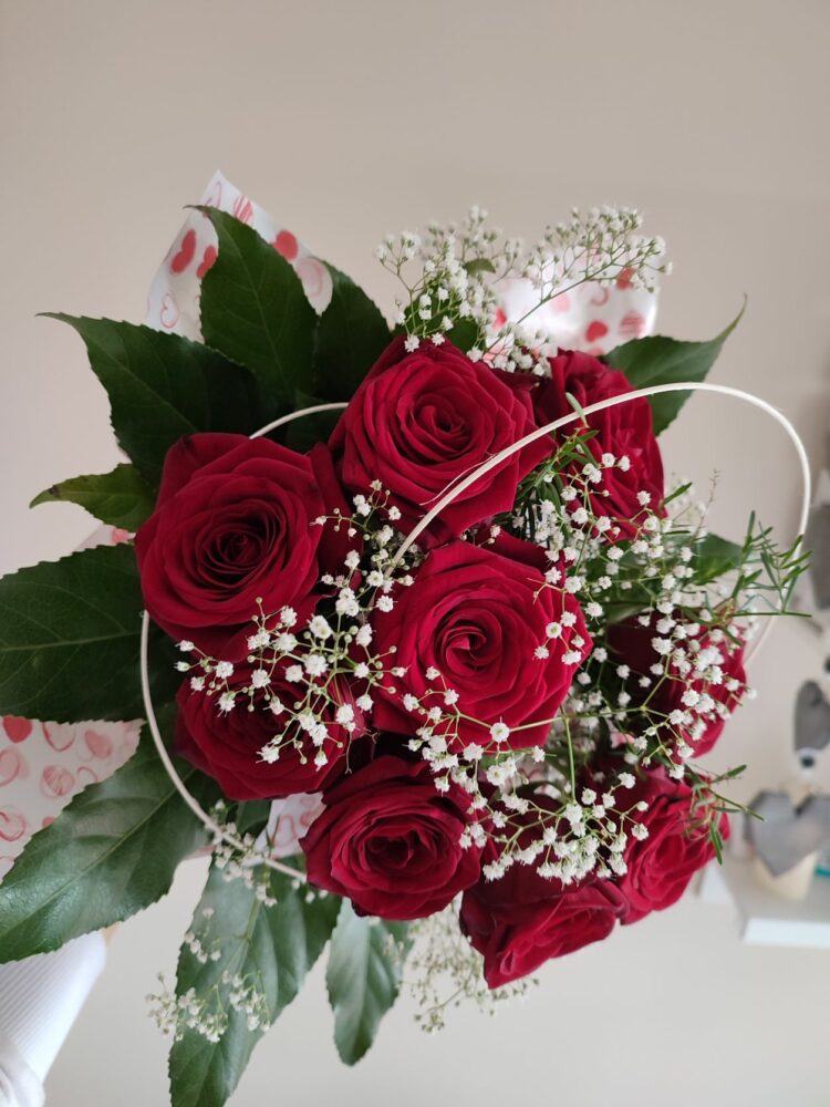 Bukiet z 9 dużych , czerwonych róż z dodatkami (wszystko naturalne).