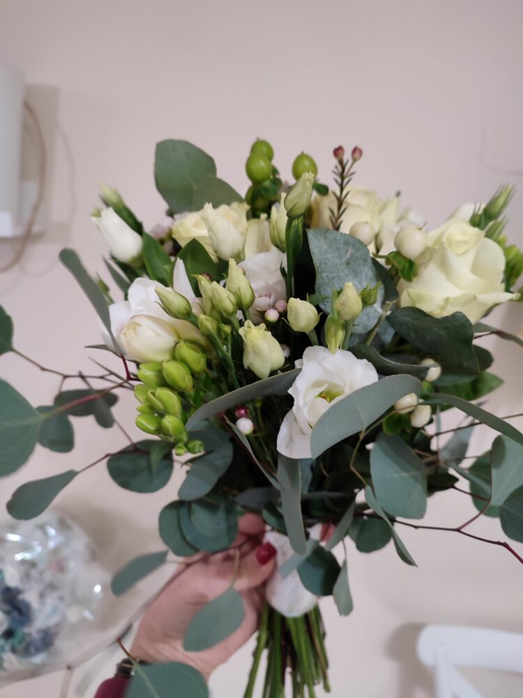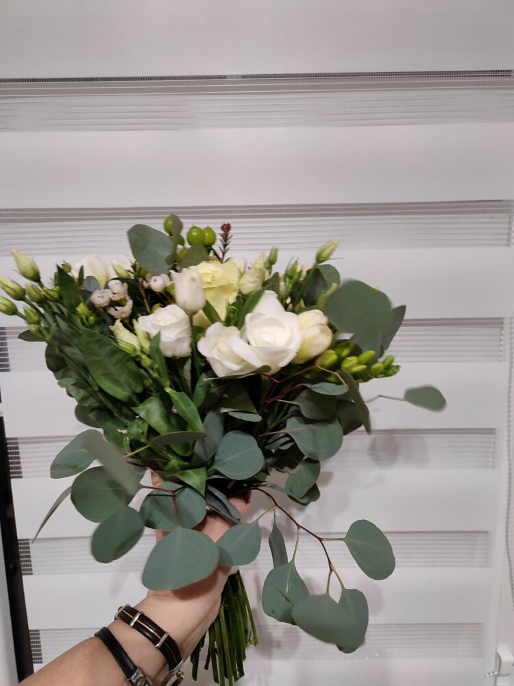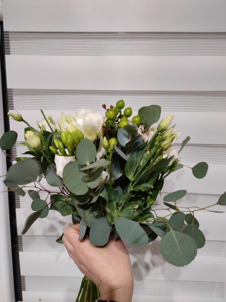 Bukiet dla druhny, naturalny, w tonacji biało-zielono-kremowej z użyciem: