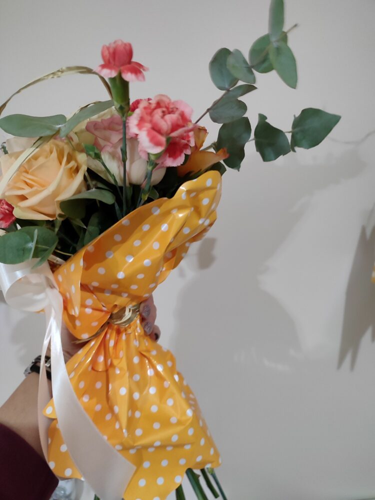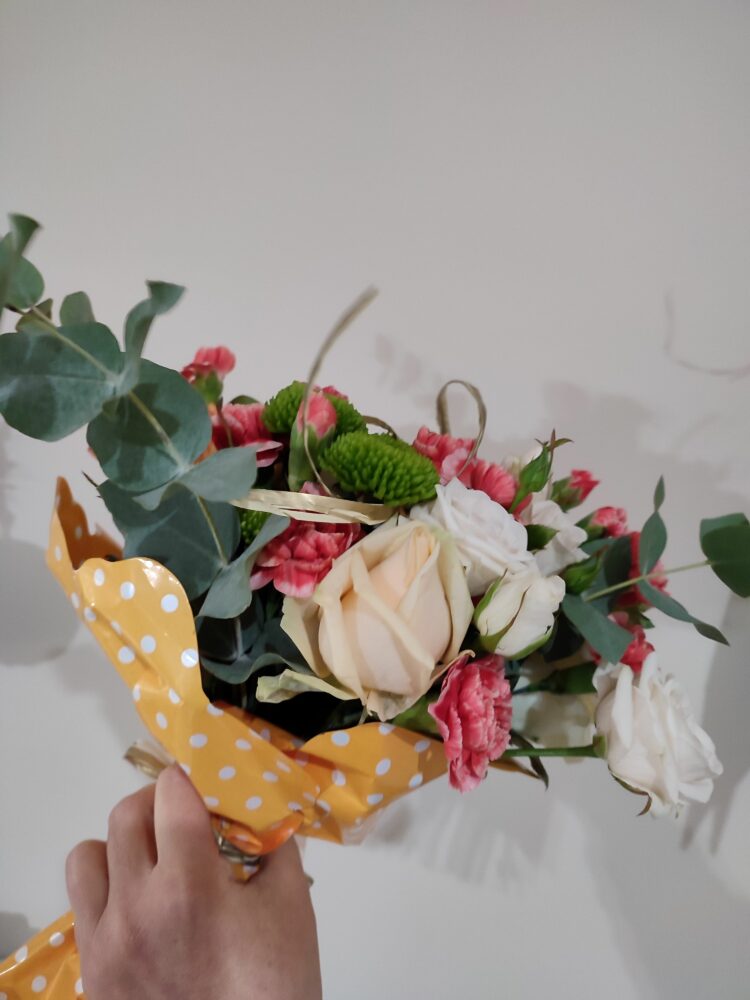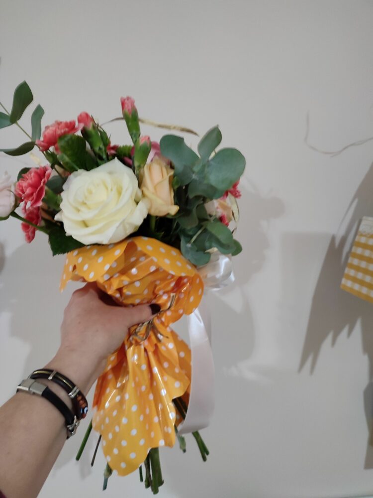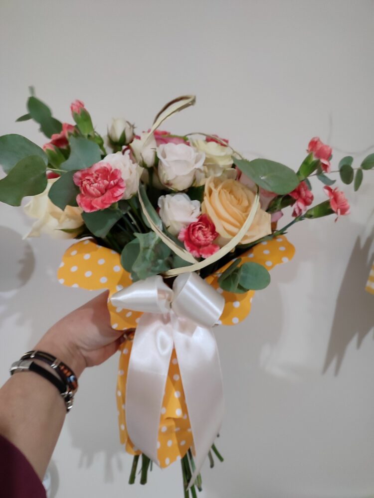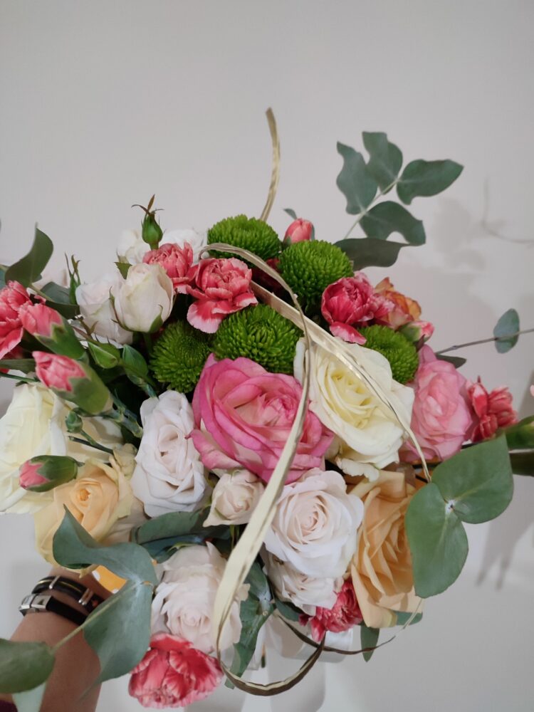 Bukiet mieszany /róże, goździki, zieleń dekoracyjna/średni /naturalny