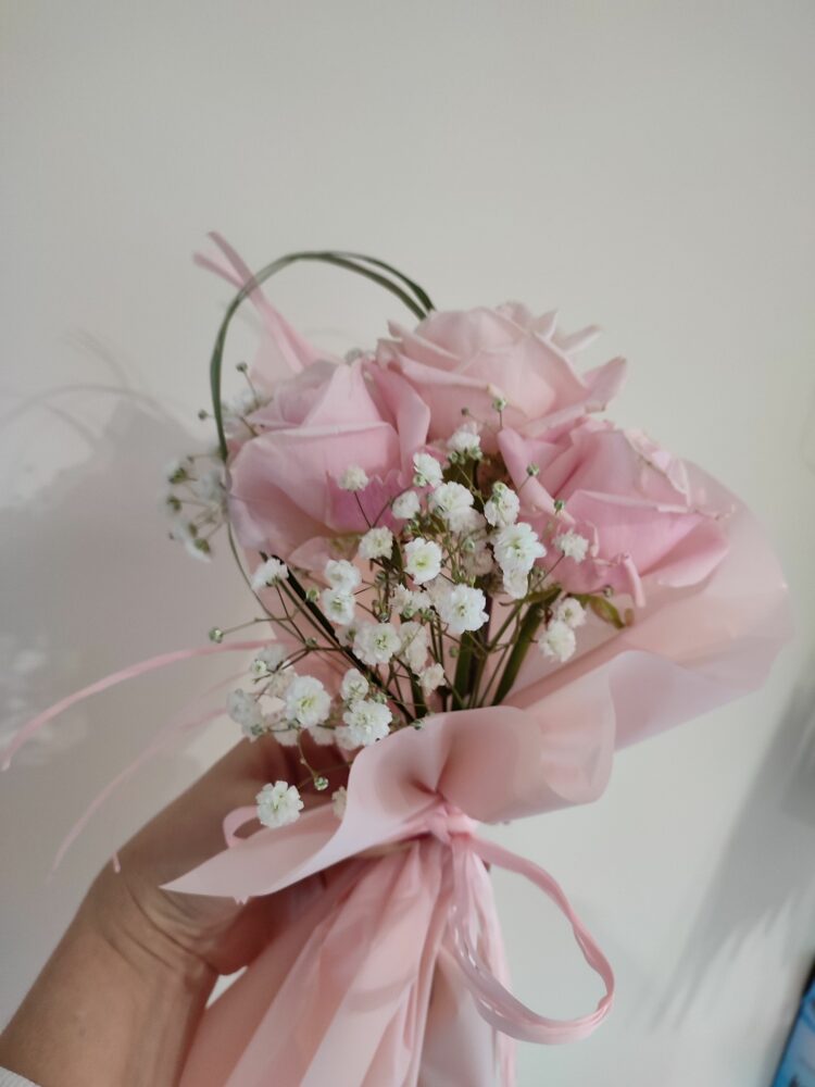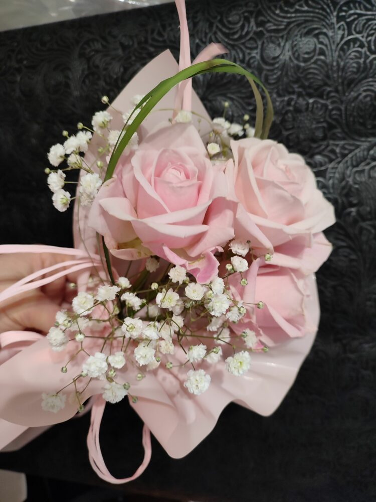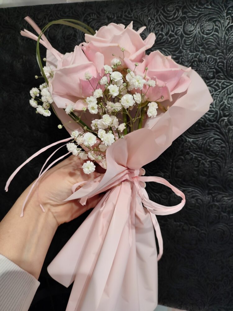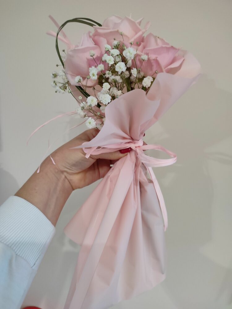 Bukiet/ Róże, gipsówka/naturalny
