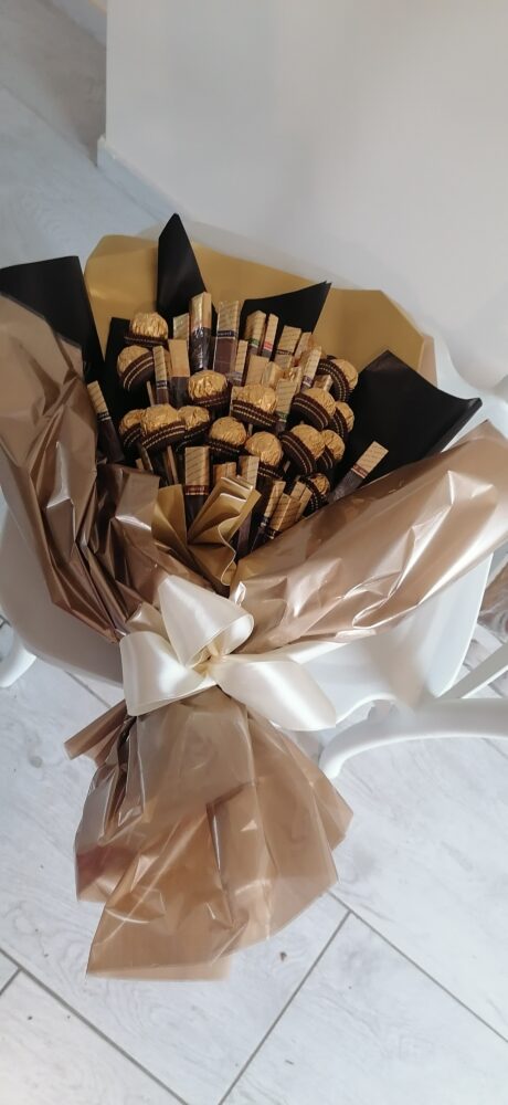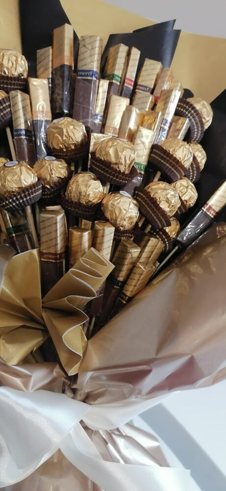 Naszym zadaniem jest ułożyć je w formie bukietu i zapakować tak, by stanowiły ekskluzywny prezent.
