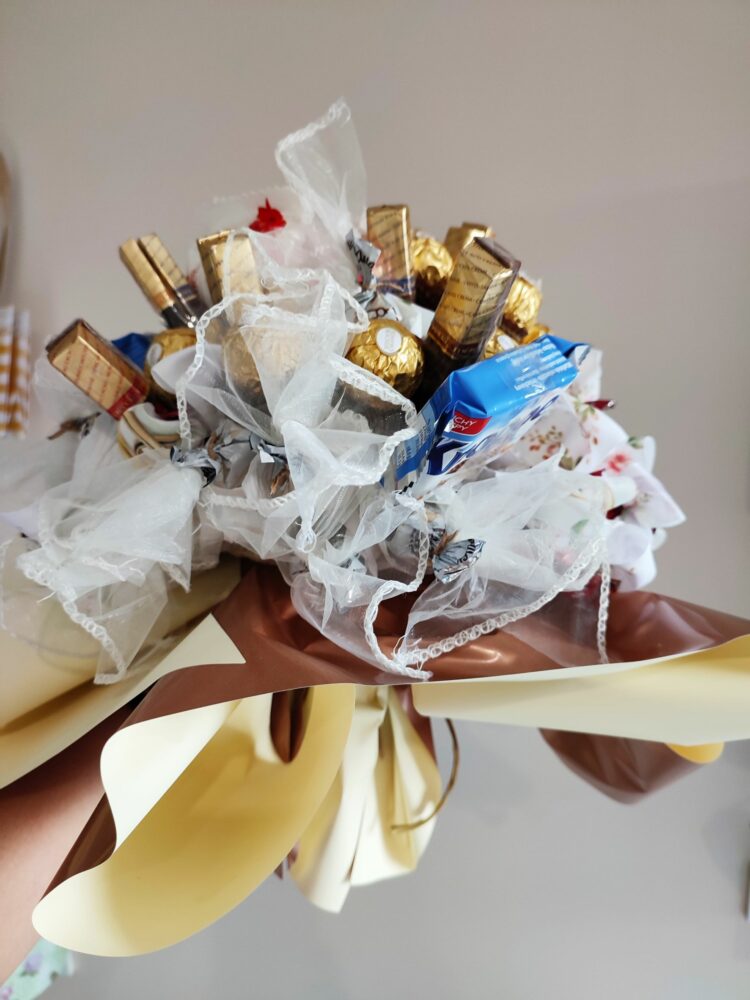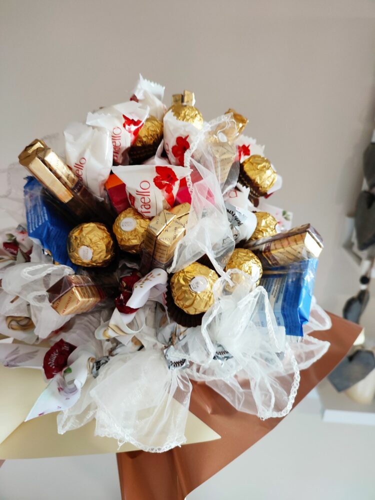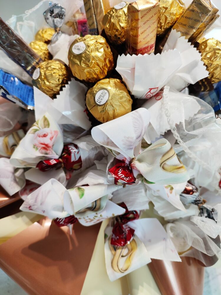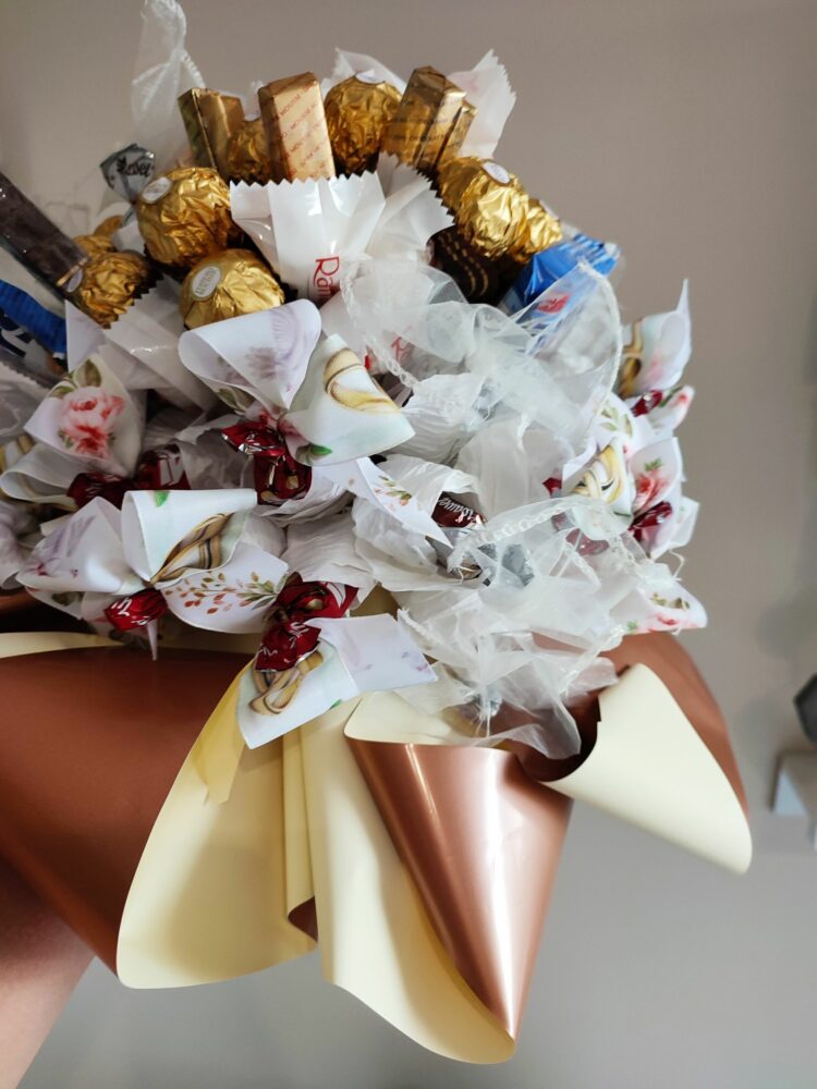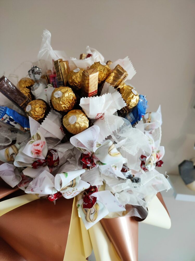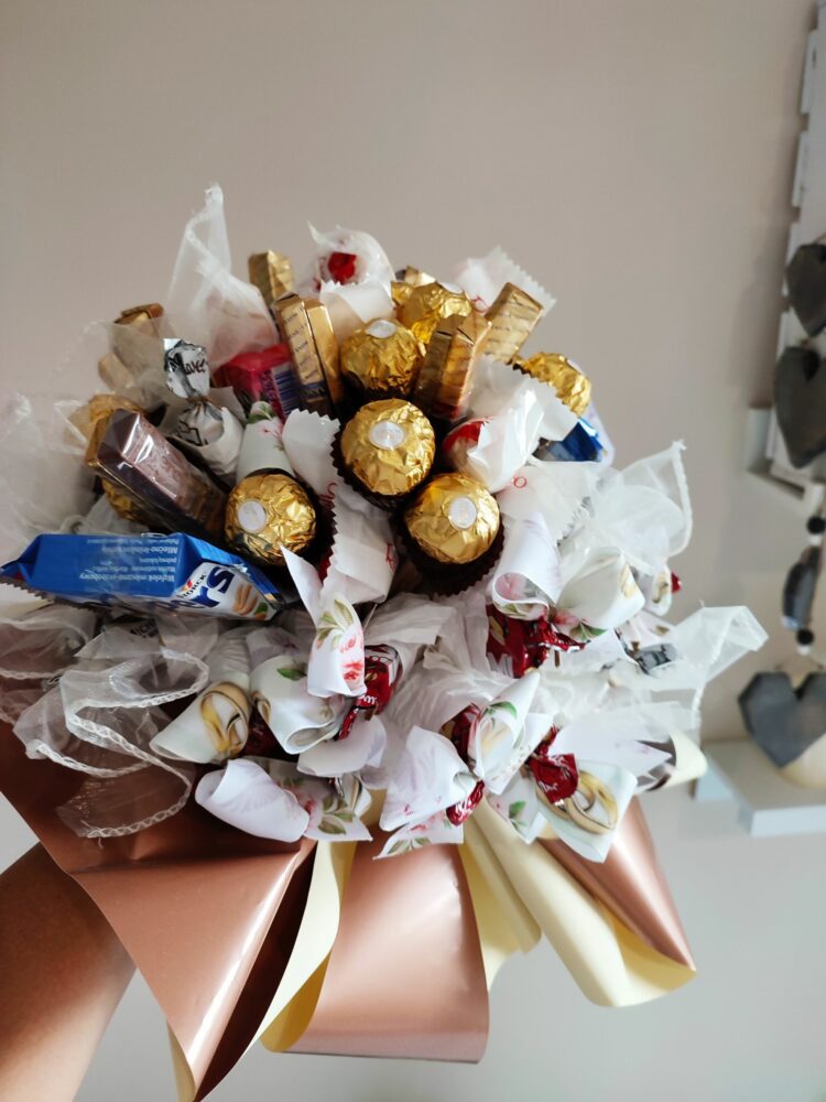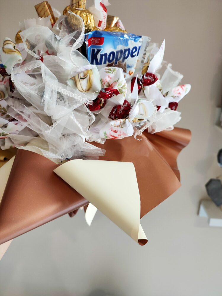 Naszym zadaniem jest ułożyć je w formie bukietu i zapakować tak, by stanowiły ekskluzywny prezent.