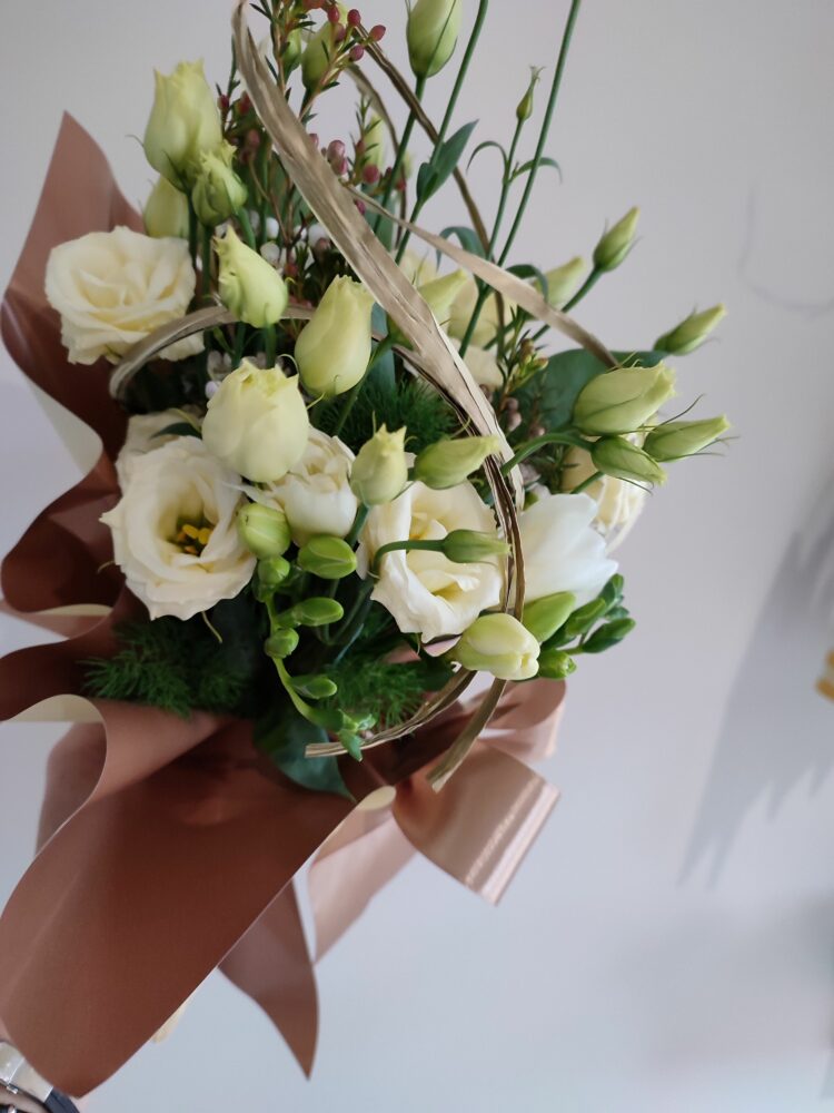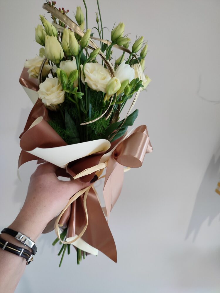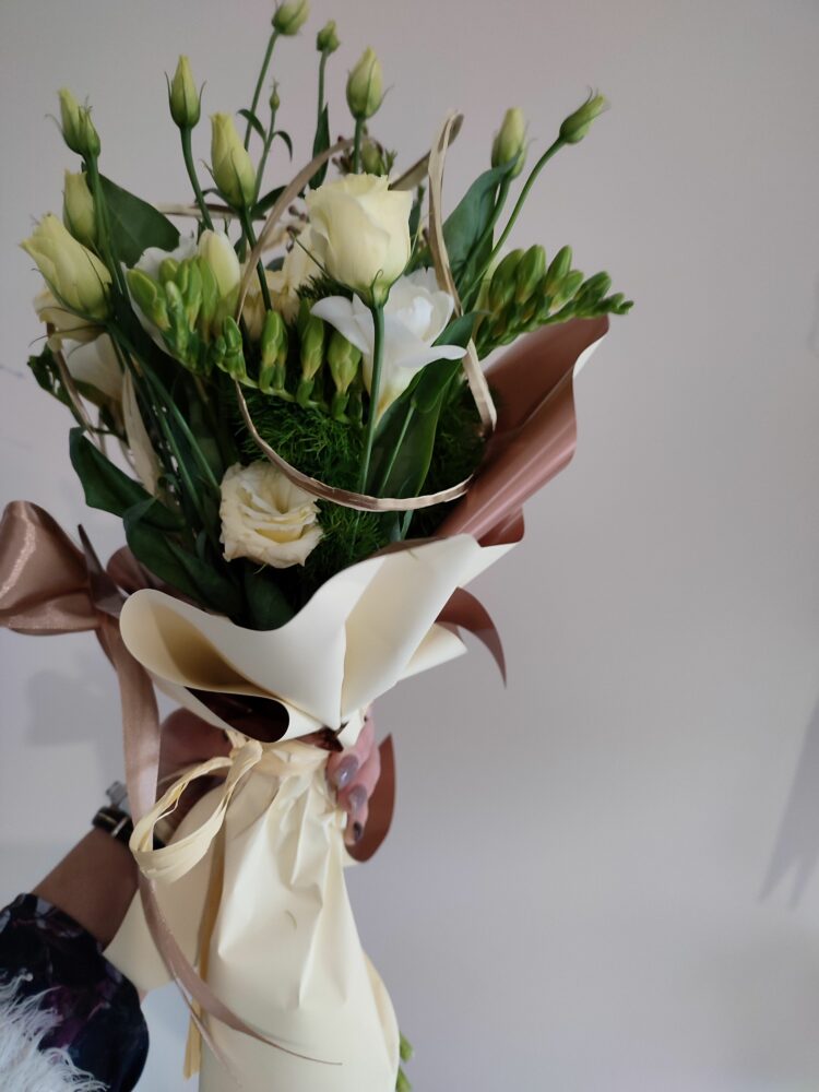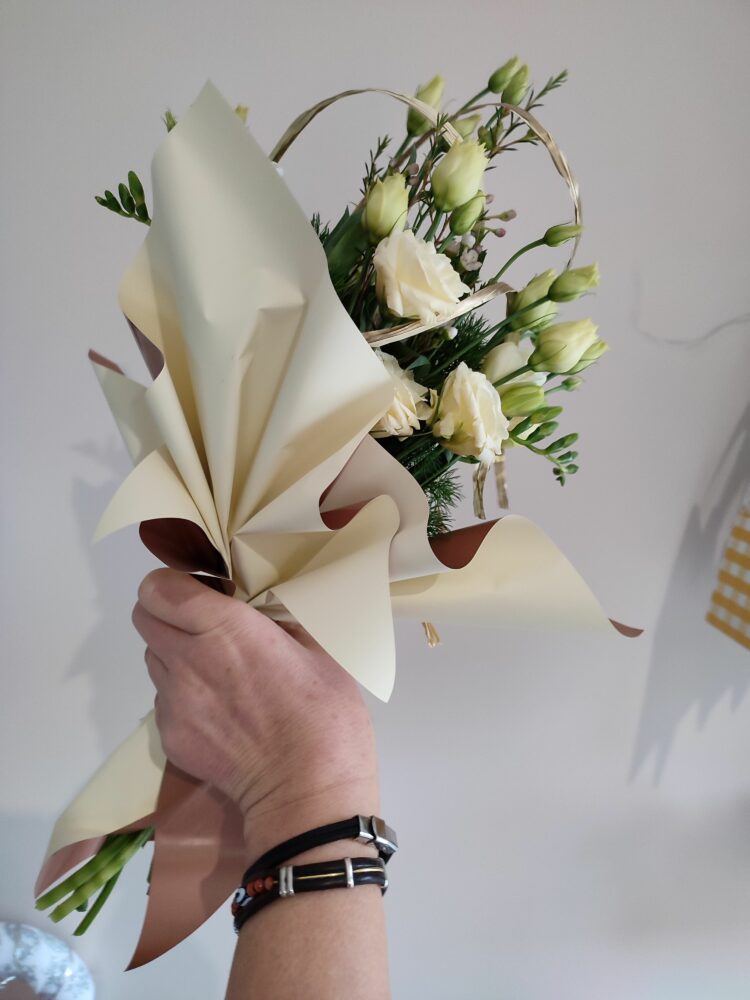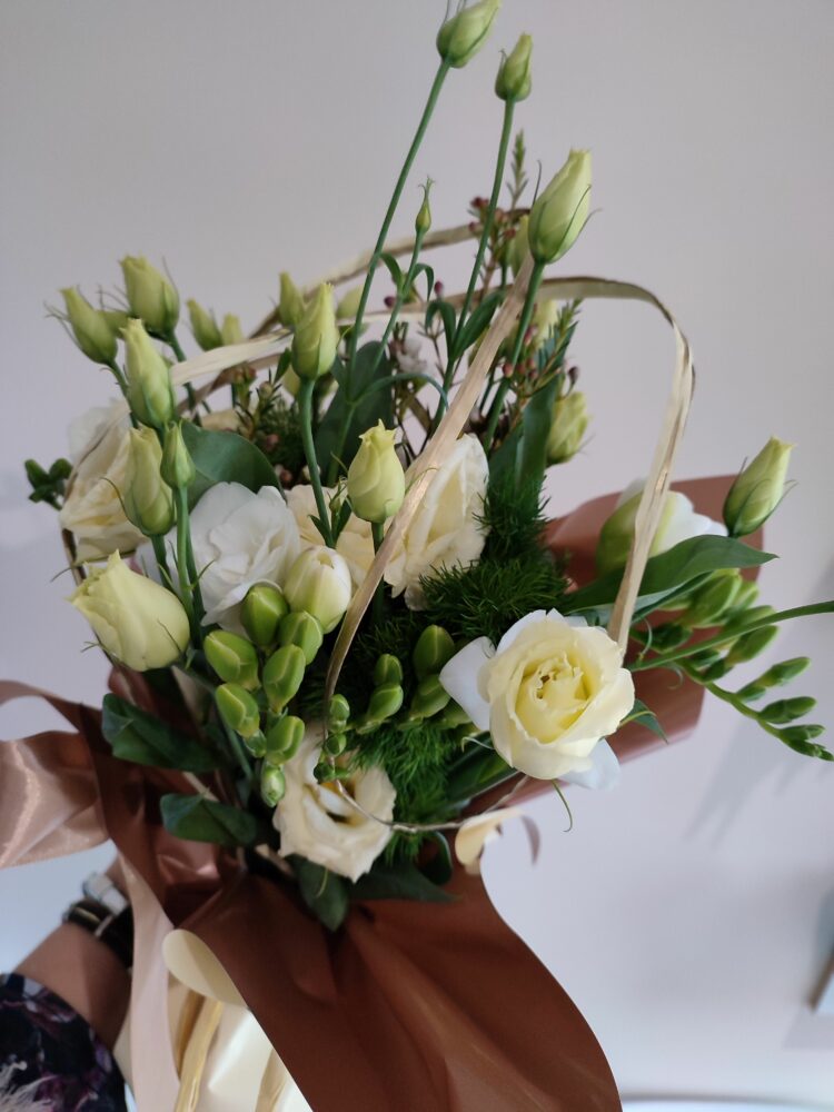 Bukiet z białej eustomy z dodatkiem waksówki/naturalny