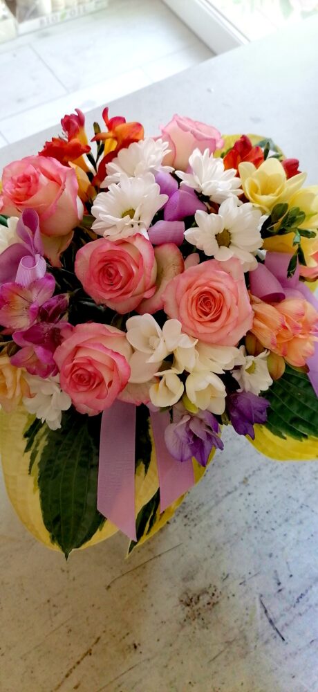 Flower box/naturalne kwiaty/róże, margerytki, frezje