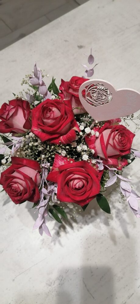 Flower box/róże/kompozycja naturalna. Pudełko ręcznie zdobione