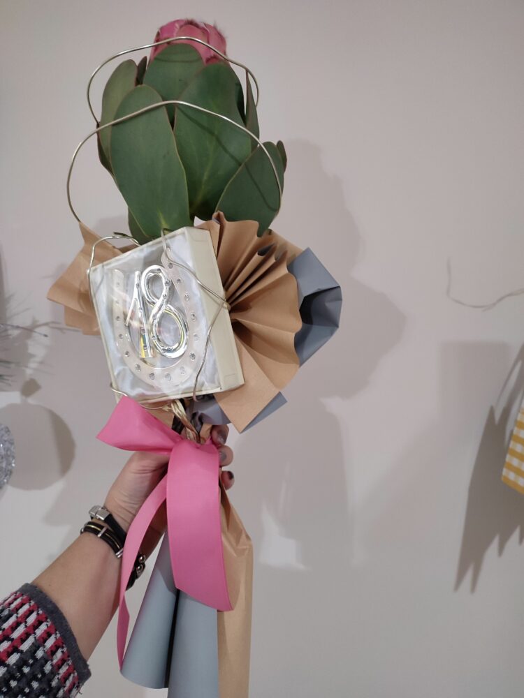 Protea z podkową/zestaw z kartką ręcznie robioną /prezent na 18 -tkę