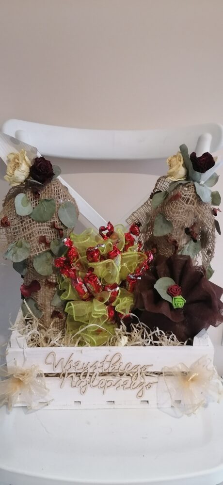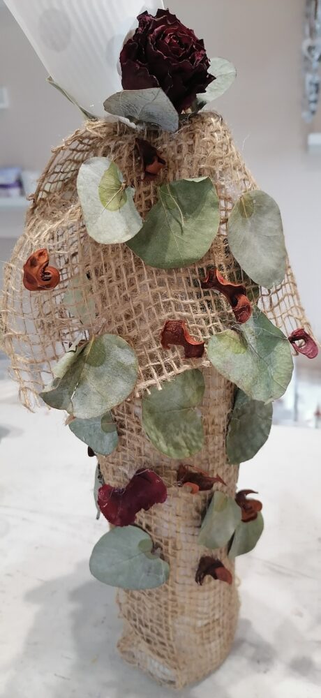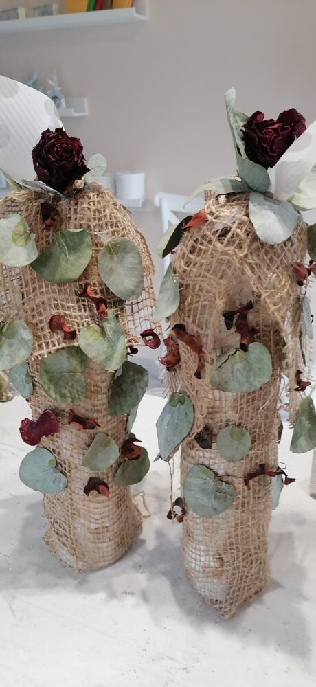 -opakowanie 2 butelek (ręcznie zdobione, m.in. naturalnymi listami eukaliptusa)