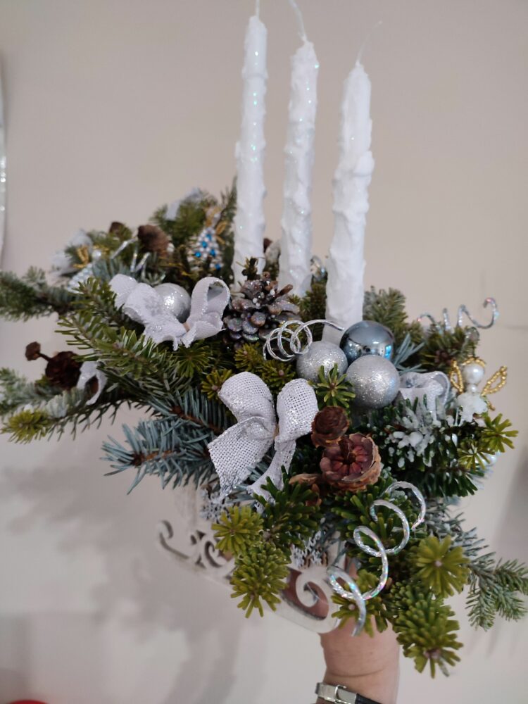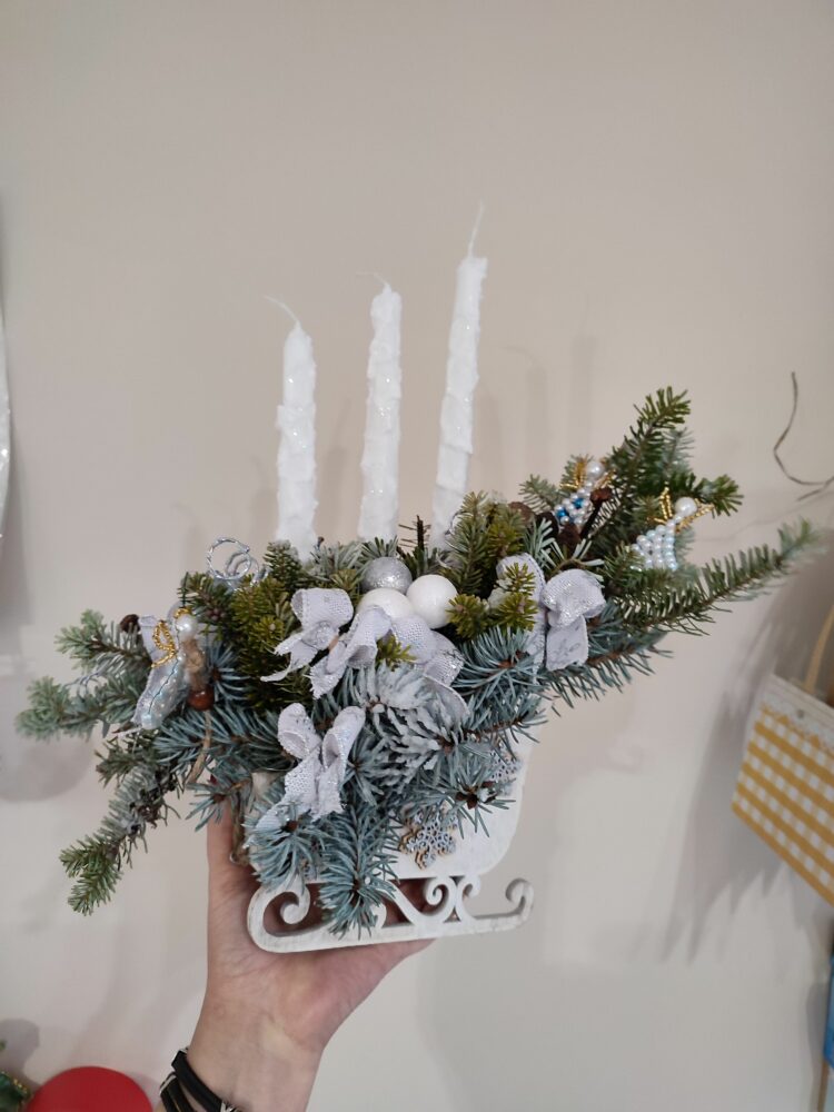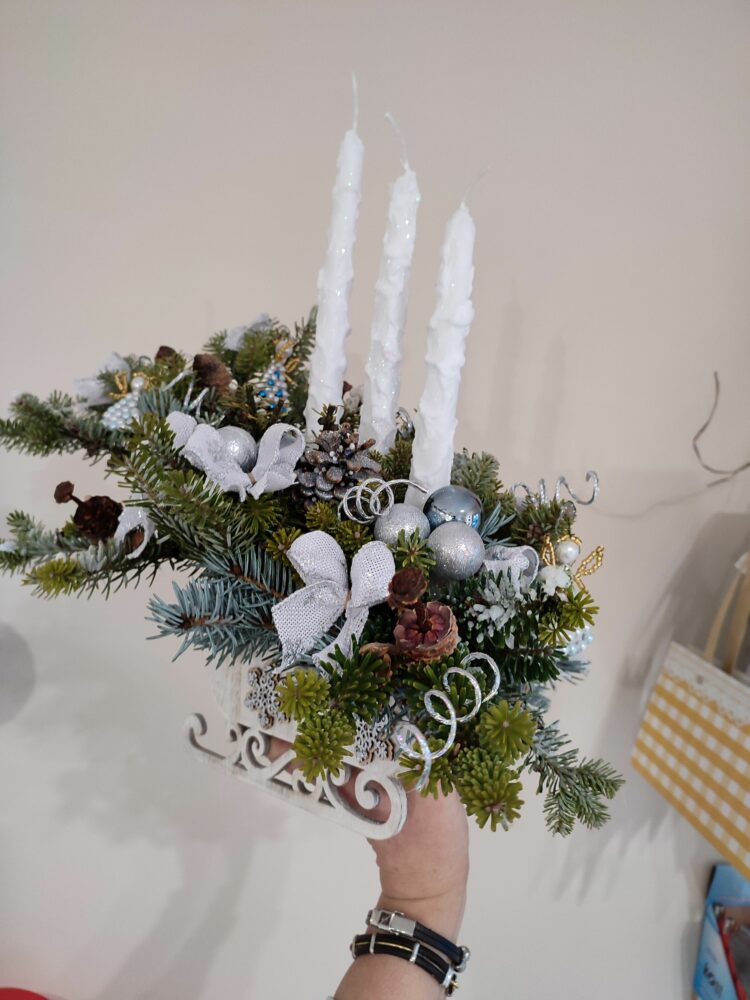 Stroik bożonarodzeniowy/ sanie/drewno /świecznik/ wykonany ręcznie/