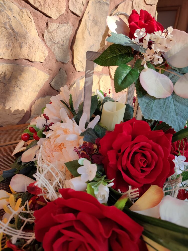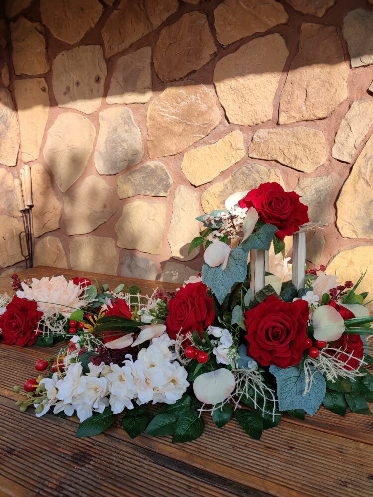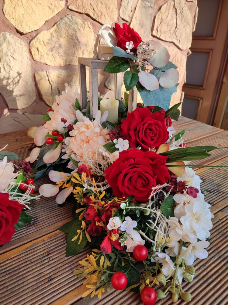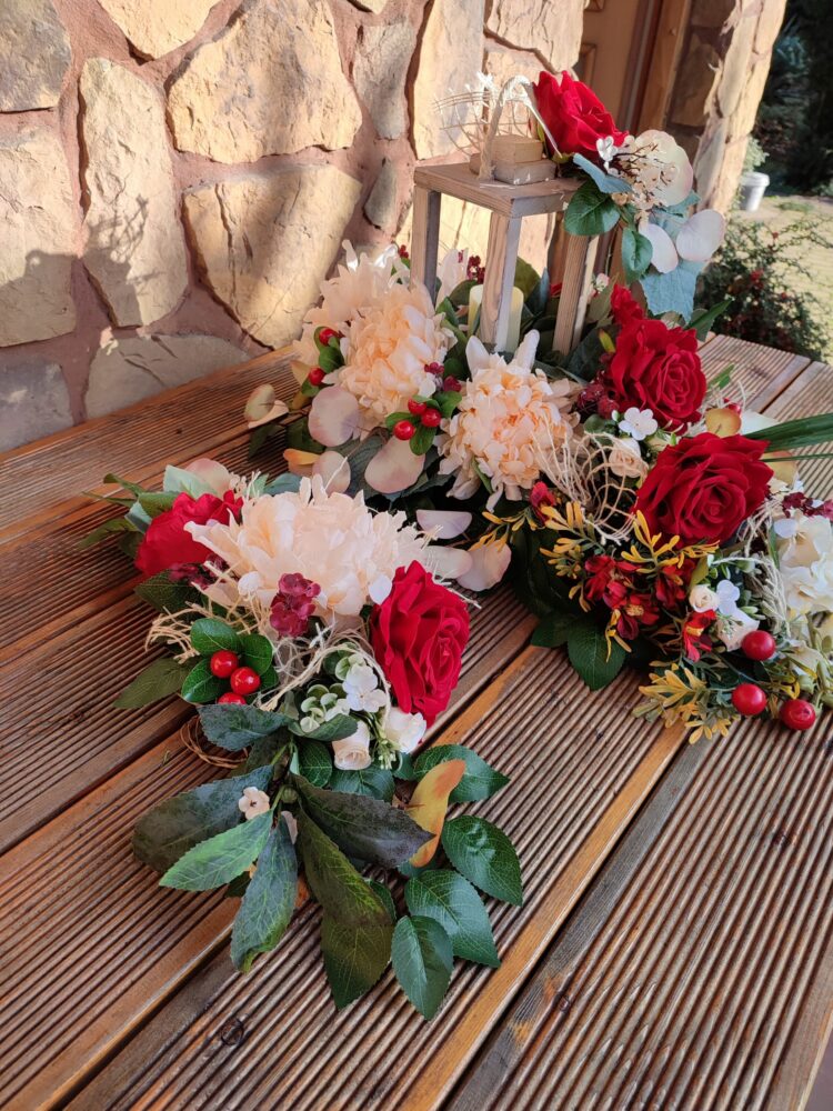 Dekoracja jest stabilna, sztuczna. Wykonana z wysokogatunkowych materiałów, z dbałością o każdy szczegół.