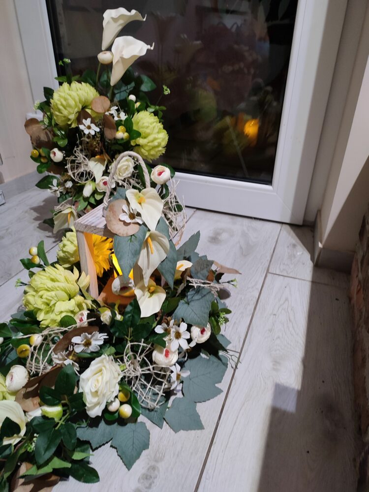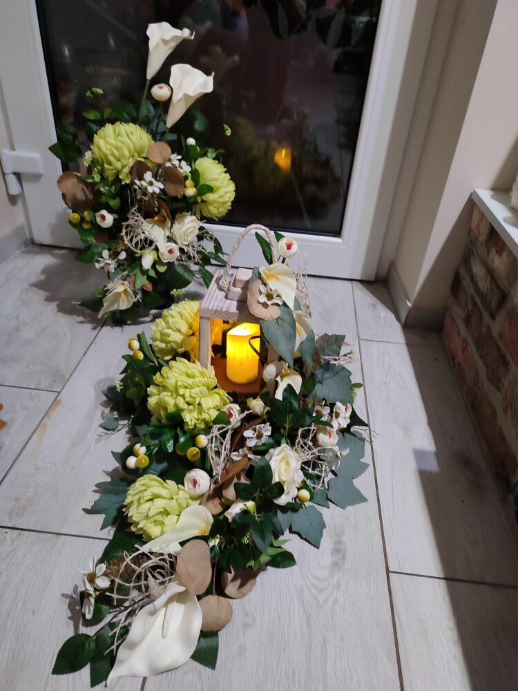 Wykonane kompozycje mogą się różnić od kompozycji zaproponowanych w ofercie. Zdjęcia przedstawione w ofercie przedstawiają przybliżoną formę oraz przybliżoną kolorystykę proponowanych kompozycji florystycznych i służą jako inspiracja do wykonania dekoracji florystycznej.