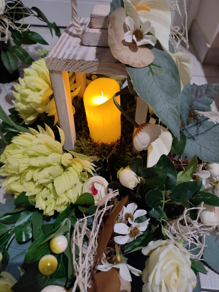 Stroik na cmentarz / zestaw wazon +stroik lampion drewno + znicz led /duży
