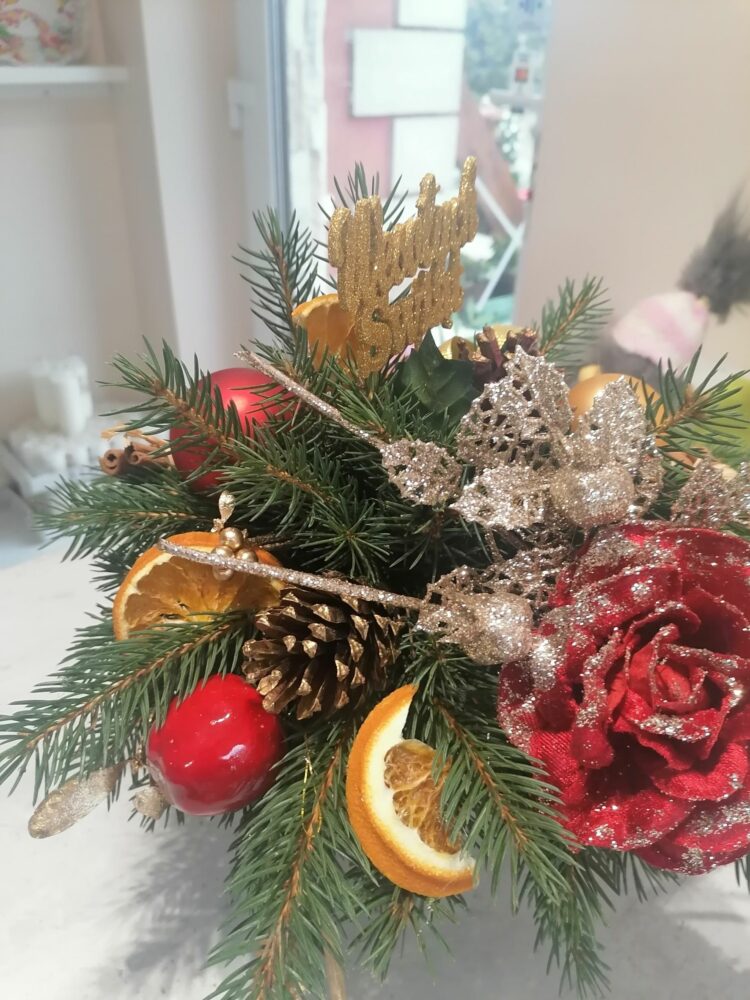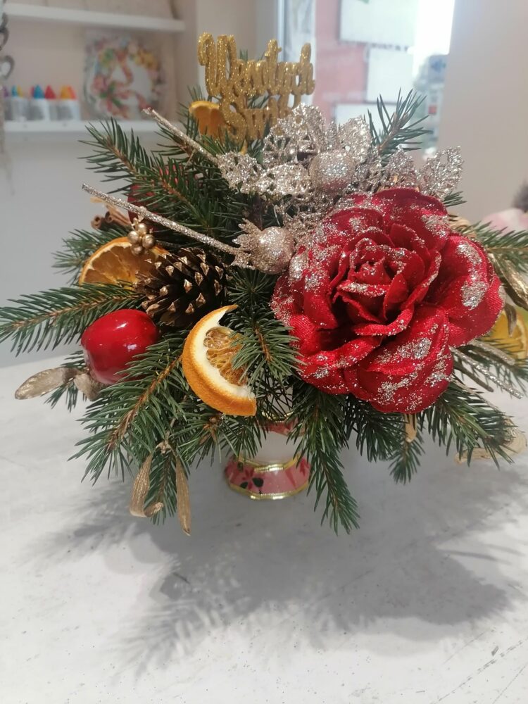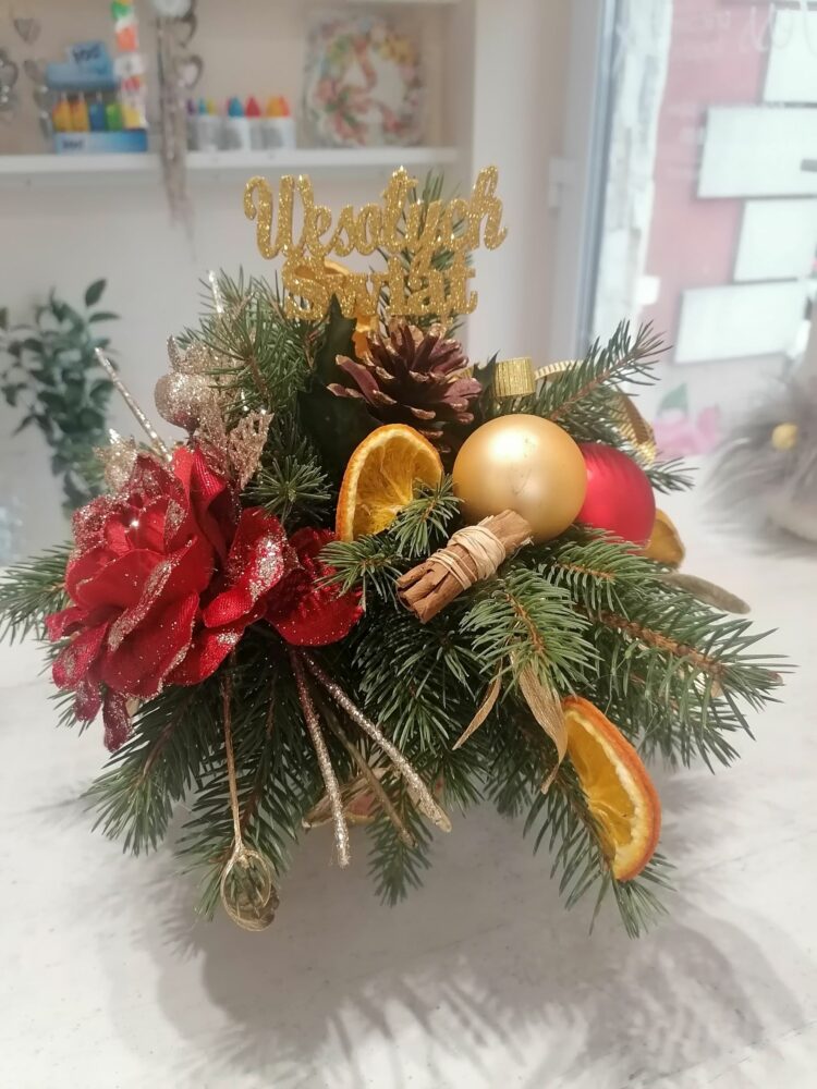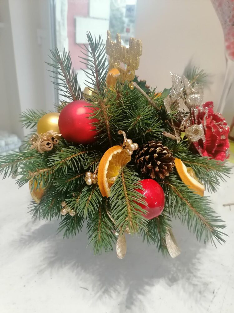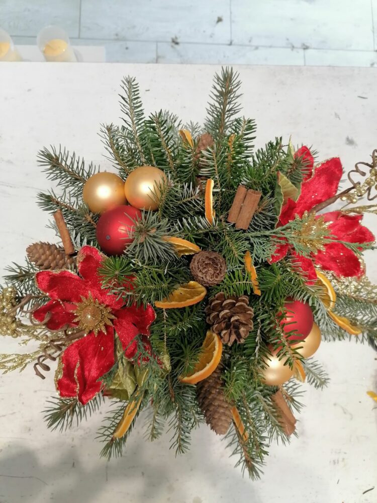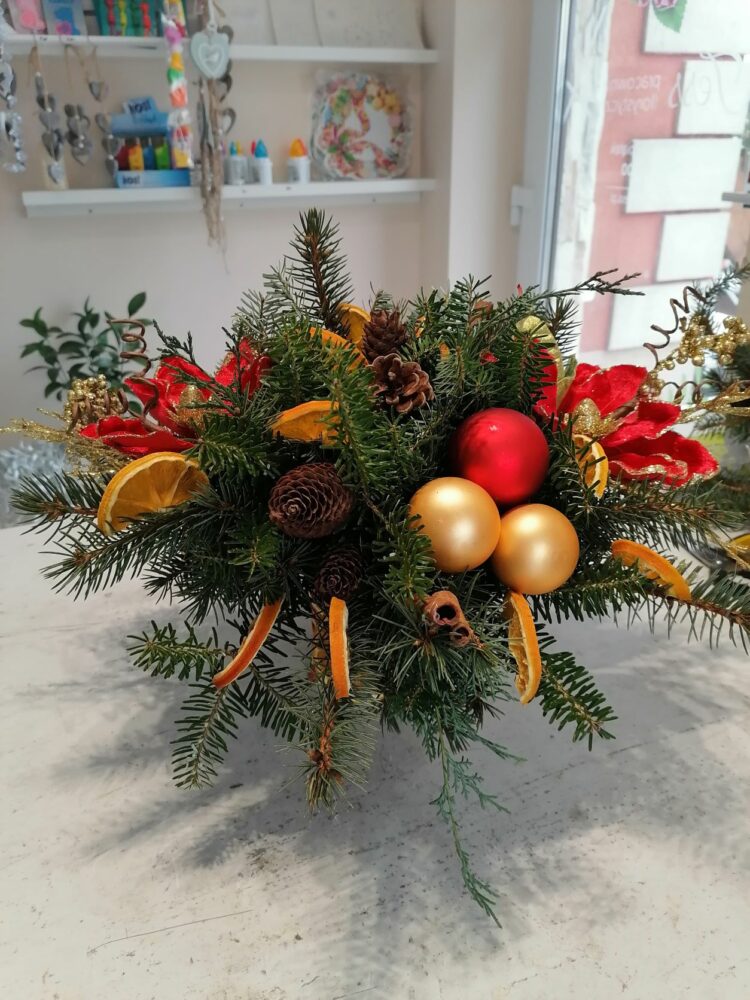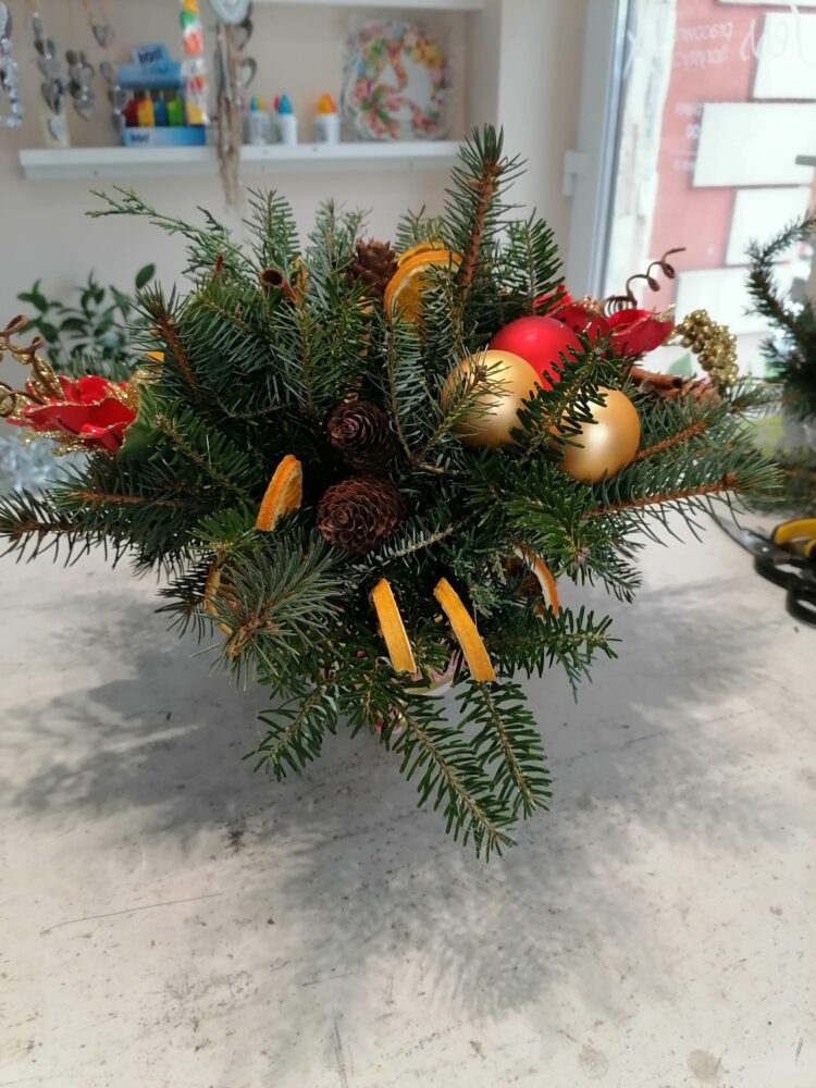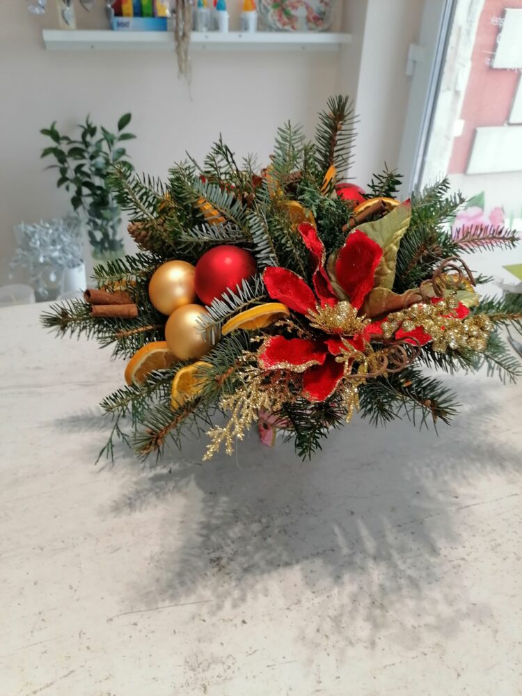 Stroik świąteczny/naturalny/ na stół/wykonany w ręcznie zdobionym porcelanowym naczyniu