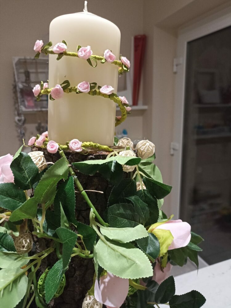 Świecznik na naturalnym pniu drzewa/ręcznie zdobiony