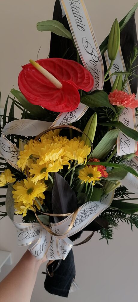 Wiązanka na pogrzeb, naturalna z lilii, anturium i margaretek