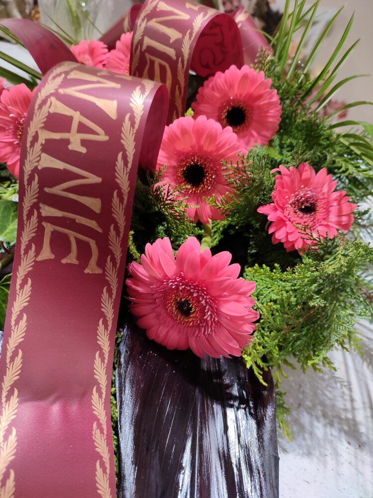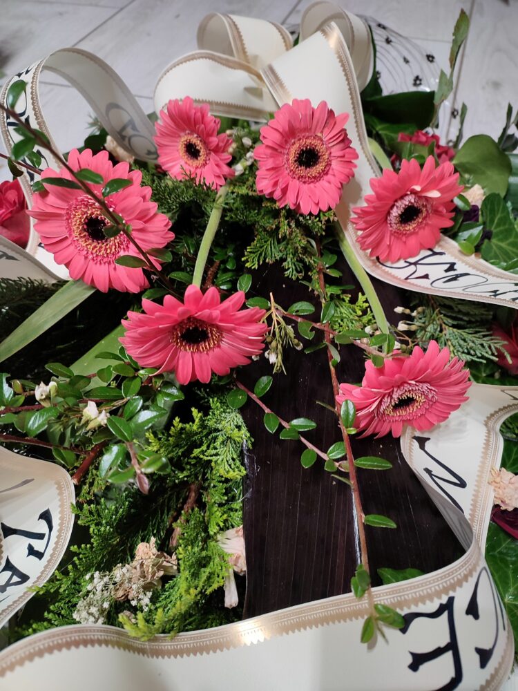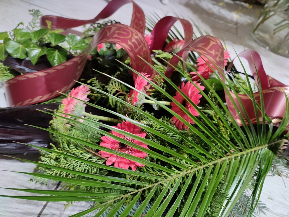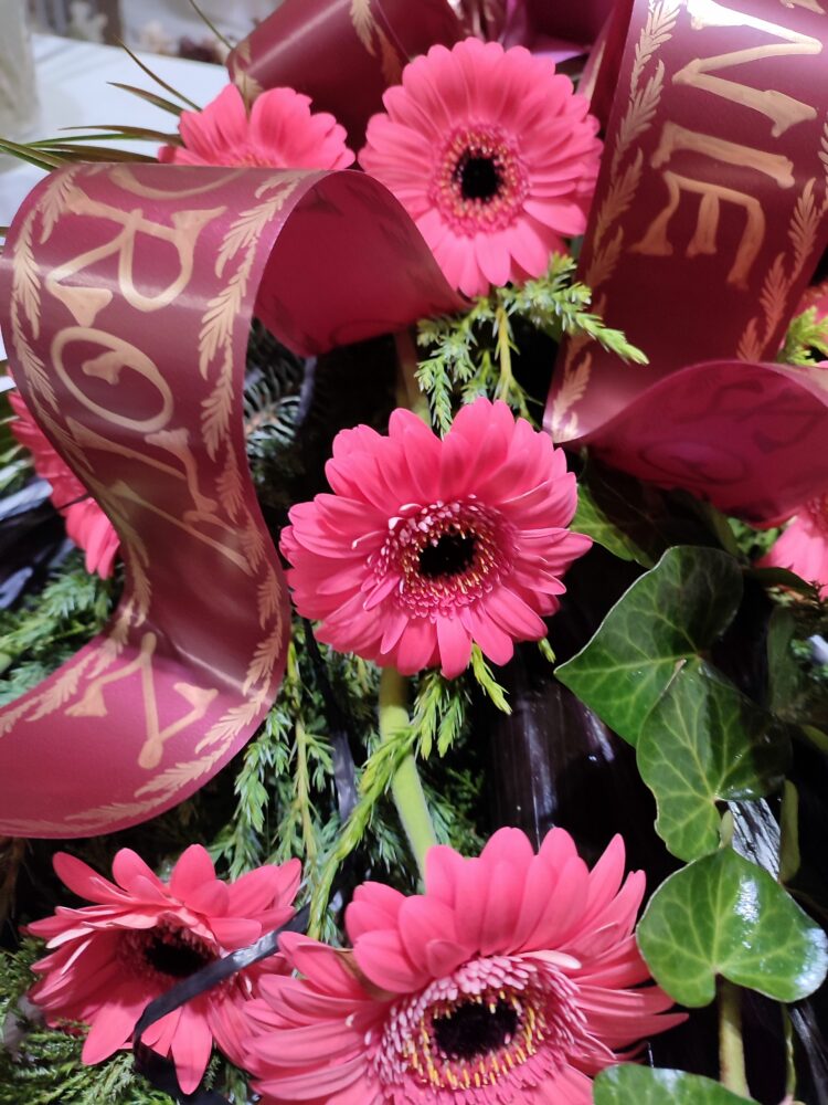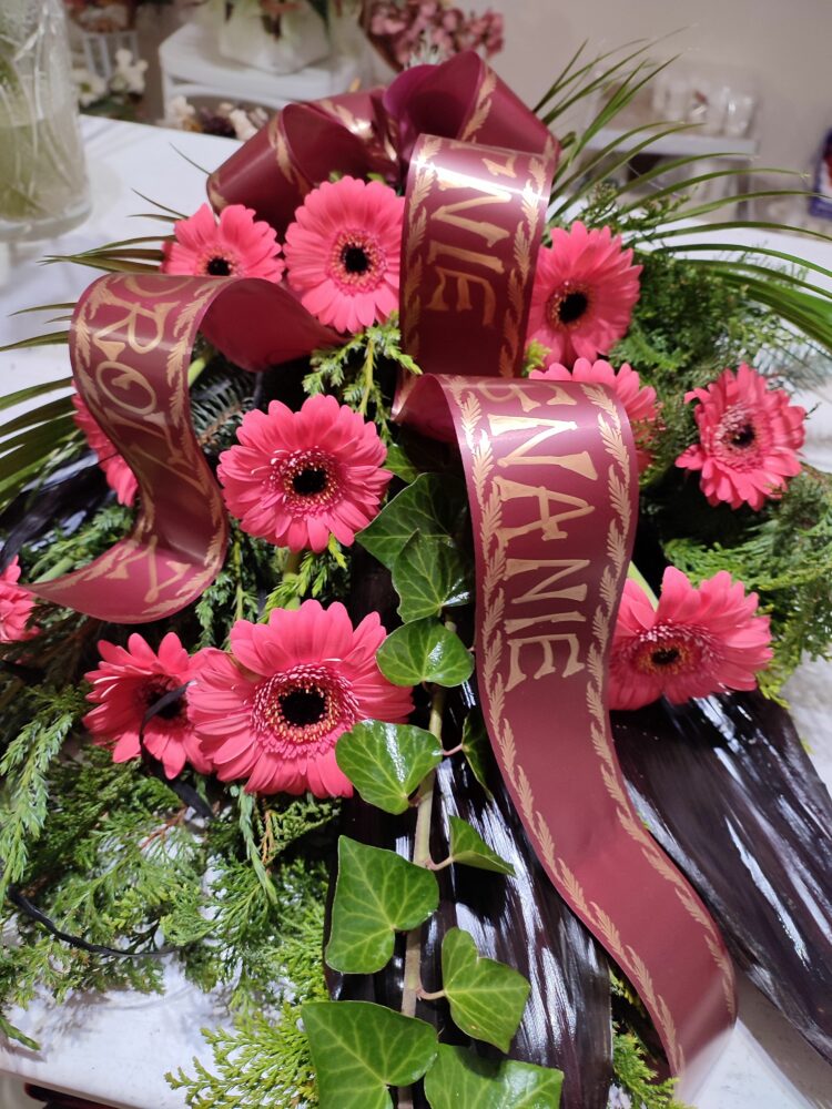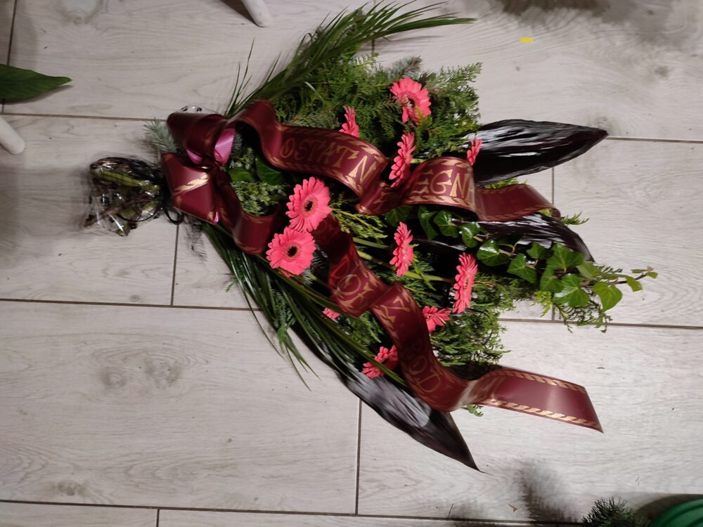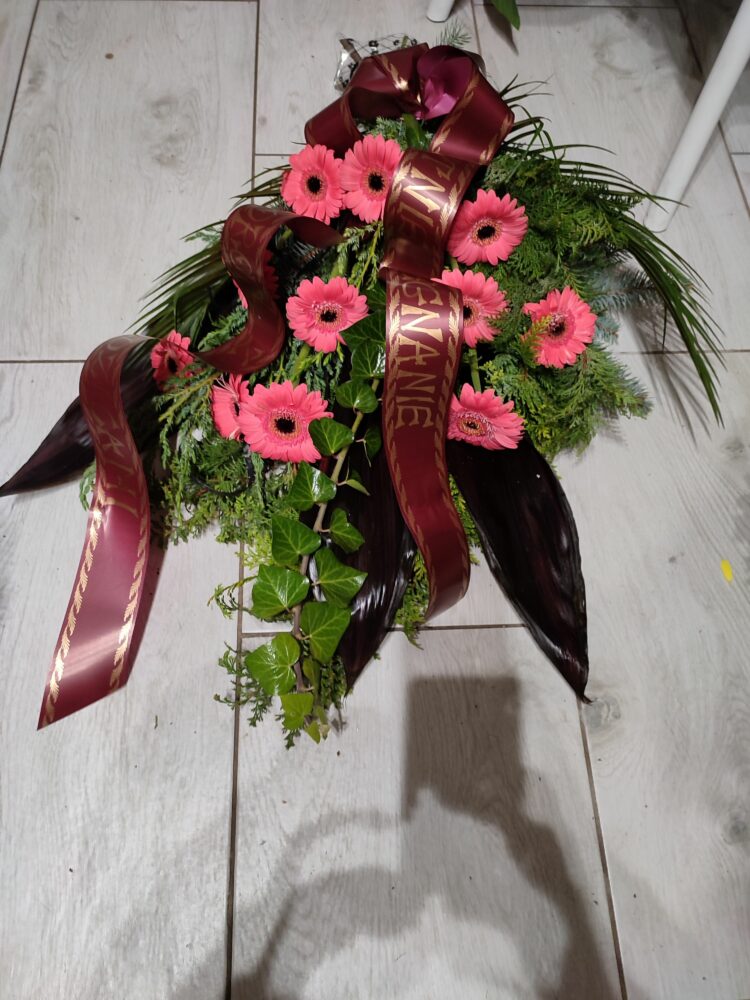 Wiązanka pogrzebowa/naturalne kwiaty- gerbery, naturalna zieleń