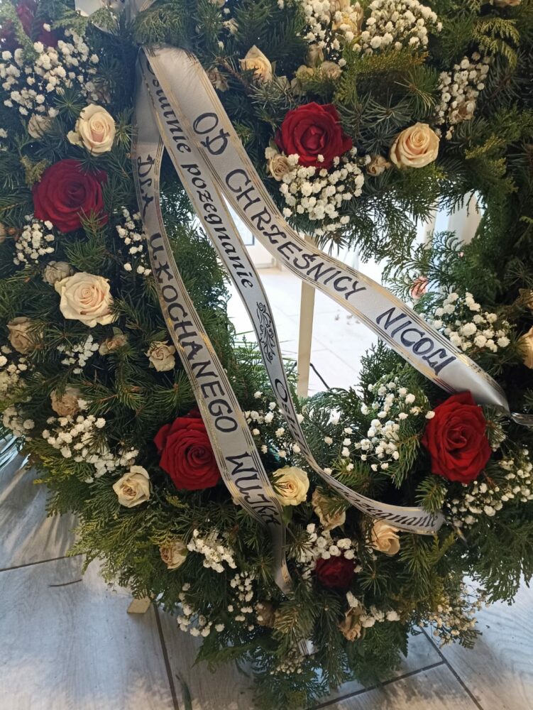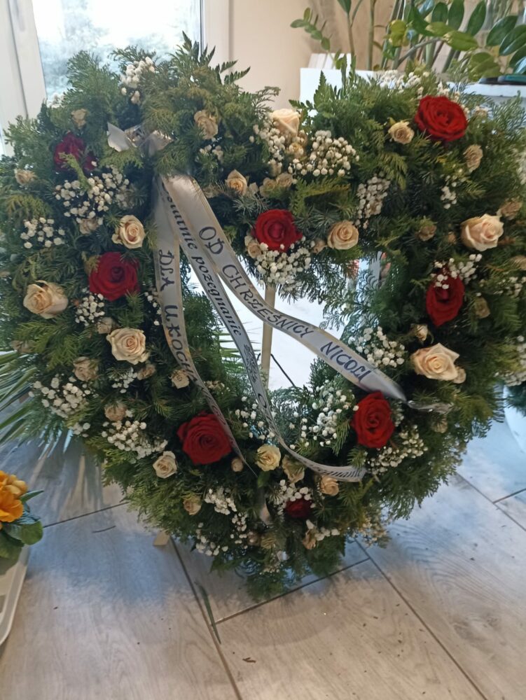 Wieniec pogrzebowy, naturalny, na stojaku