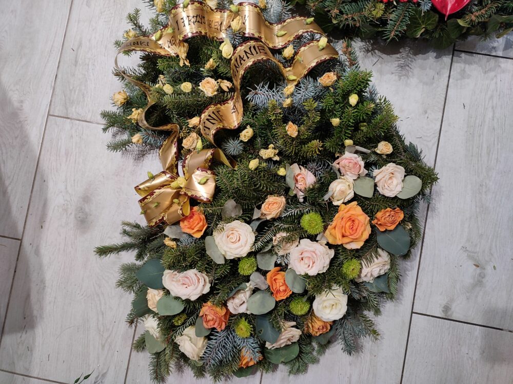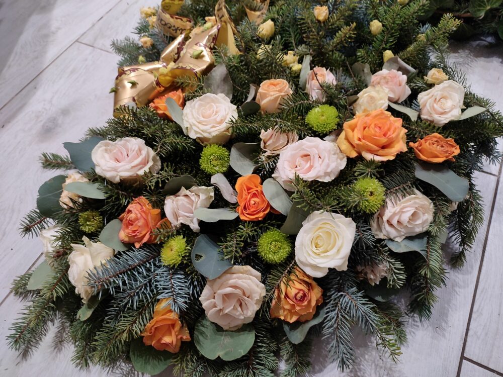 Wieniec/ na pogrzeb/ naturalny +sztuczne kwiaty/ koło , średnica 70 cm